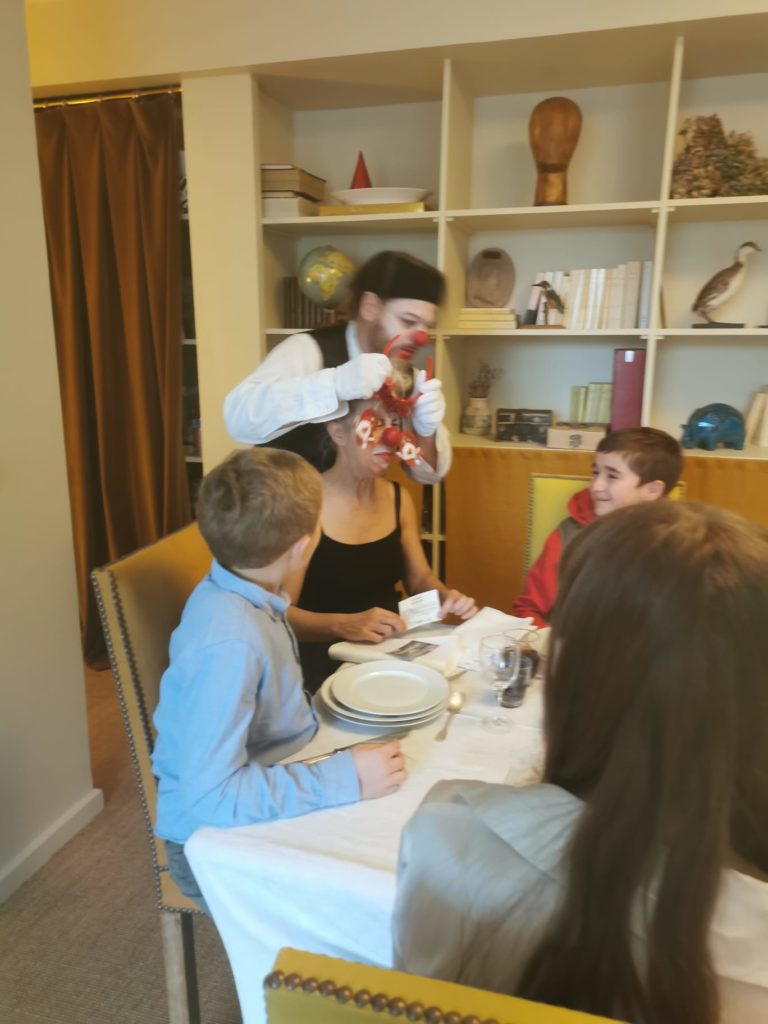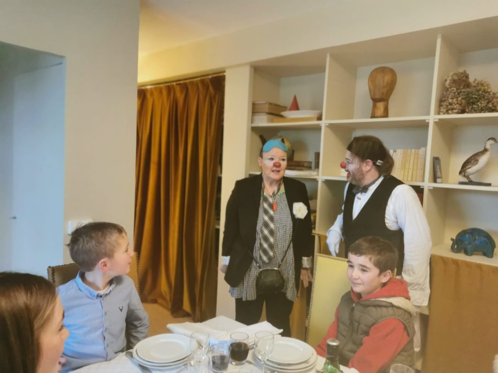 Le but est de se retrouver en privé, le temps d’un repas, d’un goûter avec 2 à 3 clowns. Selon le thème et l’envie de l’hôte, Fabri k’ clowns propose un scénario en fonction de l’envie pour petits et grands…