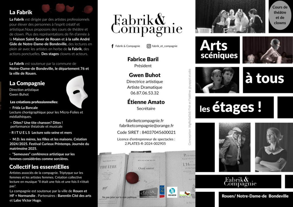 La Fabrik propose des spectacles de fin d’année à la maison St Sever de Rouen, à la salle André Gide de Notre Dame de Bondeville, des lectures en plein air avec les artistes en herbe de la Fabri k, des actions ponctuelles sur des Forums, à l’armada, ou en centre pour poly-handicapés.